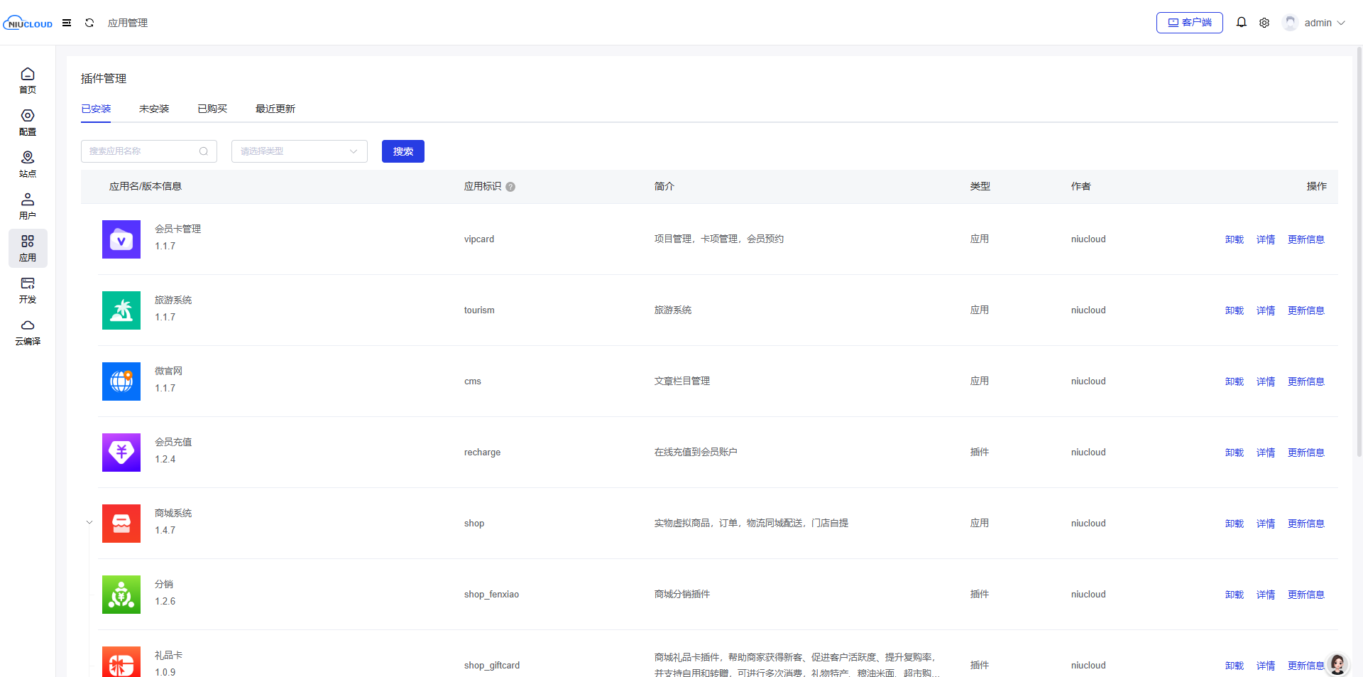 - niucloud-admin采用多租户的saas系统设计,支持多站点多商户多门店多应用多插件组合使用。