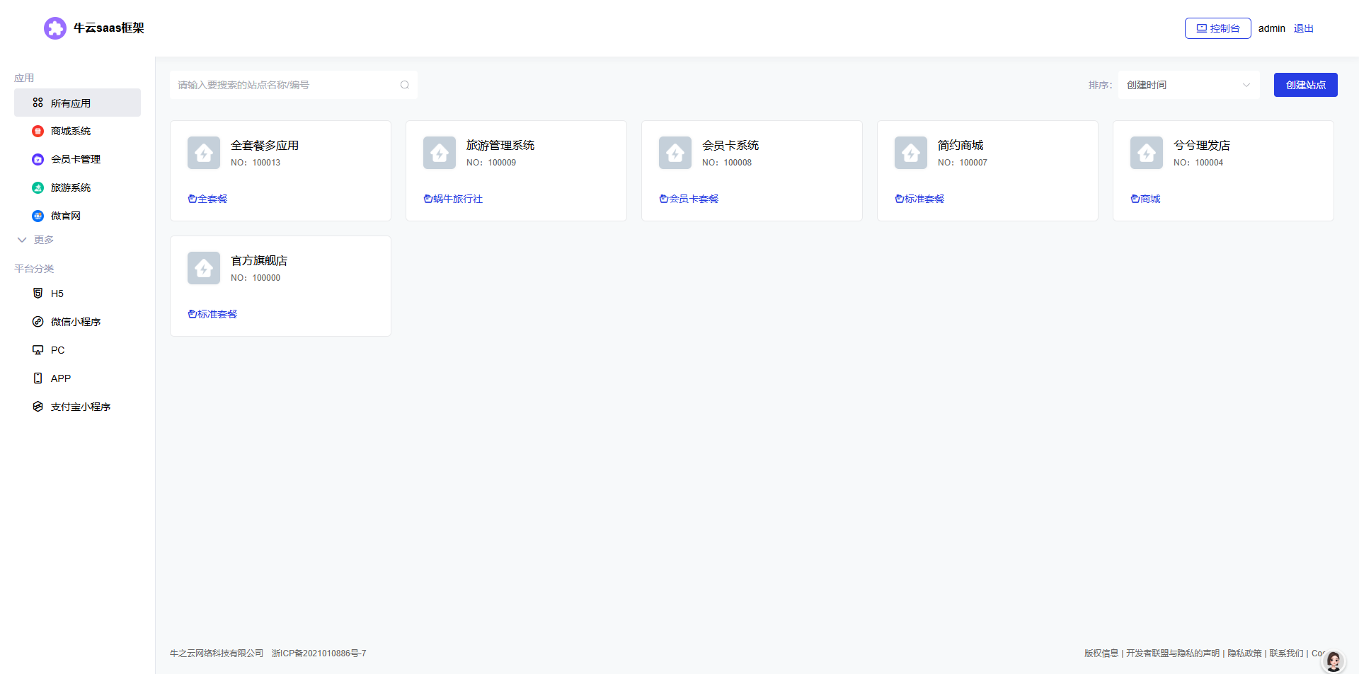 平台后台演示网址:[ 查看 ] http://demo-saas.site.niucloud.com/admin